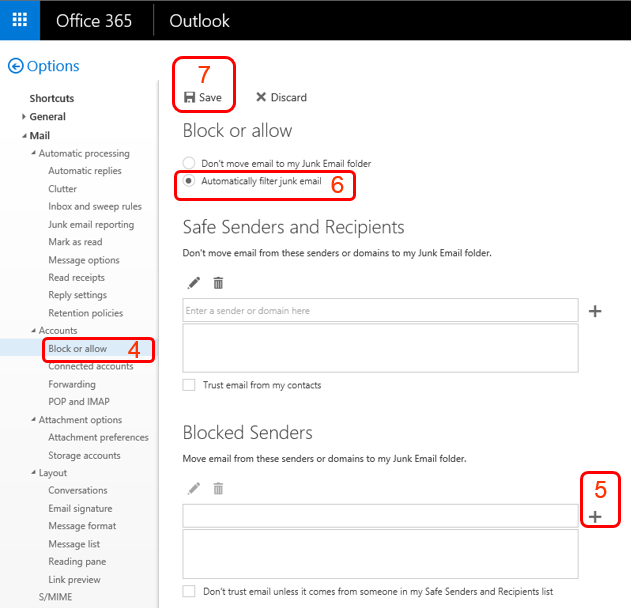 How to set up Blocked Sender List in Microsoft 365 using OWA (Web logon)?