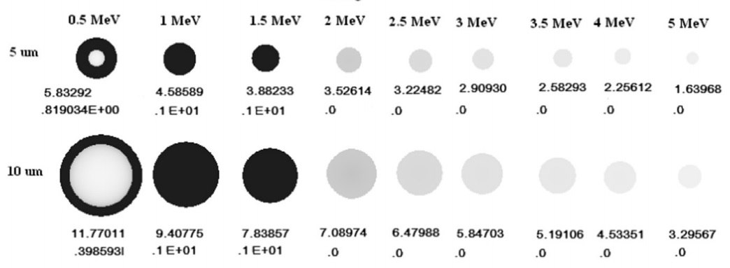 between 0.5 and 5 MeV with incident angles of 90 deg, and
