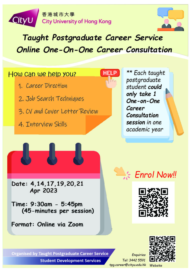 Taught Postgraduate Career Service - Online One-On-One Career Consultation