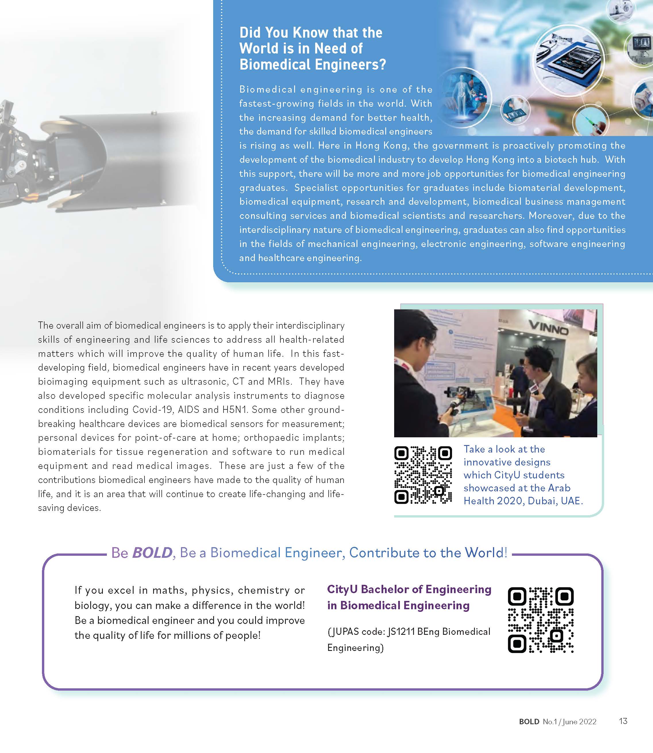 - The Hong Kong government has clearly identified medical and testing/certification services as among the six industries with clear advantages for further development. The Biomedical Engineering major will educate future professionals in these industries.