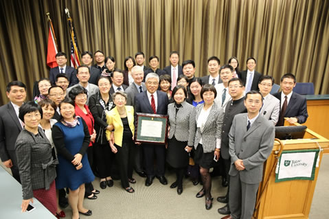 16 June, 2015 A delegation of 30 Chinese senior judges who are also students of the JSD Chinese Judges Programmes of the School of Law, City University of Hong Kong took part in a 14-day academic visit to the United States from 19 April – 2 May, 2015. The Visit was co-organized by the Law School, Tulane University and the Centre for Judicial Education and Research, City University of Hong Kong. The Distinguished Judicial Exchange Programme included brief sessions with Tulane Law faculty on various topics including Louisiana law, family law, U.S. constitutional law, maritime law and environmental law; meeting with federal and state judges and lectures by a panel of Justice Department officials. Through a special live-broadcast panel, the delegation also received a perspective on municipal courts from Judge George Anagnost of Peoria, Arizona. Mrs. Virginia Eason and former Ambassador John Giffen Weinmann who helps sustain Tulane’s Eason-Weinmann Center for International and Comparative Law held a reception to welcome the delegation at their home. Prof. Wang Guiguo’s investiture as Tulane’s Eason-Weinmann Chair of International and Comparative Law was the highlight of the Programme. Both Virginia and John Weinmann offered warm remarks at the investiture. |