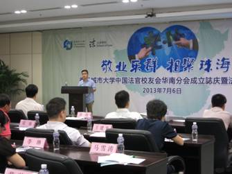 香港城市大學(xué)中國法官校友會華南分會于2013年7月6 日舉行成立大會,是為校友會自本年1月積極籌辦以來,首次的正式活動。 成立大會假珠海市中級人民法院審判大樓天平廳舉行,并由關(guān)文偉博士主持。大會開始,首先由第一屆法官博士課程班學(xué)生、珠海斗門法院院長徐素平代表籌備組報告校友會華南分會的現(xiàn)況。所有曾就讀或正在讀「中國高級法官研修班」、「中國法官法學(xué)博士課程」、以及「中國法官法學(xué)碩士課程」之大陸法官均為「中國法官校友會」之終生成員。校友會已按地域劃分成立分會,目的為增進(jìn)各省法官校友之間的聯(lián)系,促進(jìn)感情,并為校友與母校建立溝通平臺。到目前為止,華南分會校友人數(shù)共63人,分別來自廣東、廣西、福建、海南四個省份。 陳磊博士接著宣布華南分會組織架構(gòu)人員名單,由第一屆法法官博士課程班學(xué)生、珠海中院副院長黃志堅出任會長。另設(shè)顧問、副會長、秘書長,副秘書長等職位。 其后,會長黃志堅院長及各省份的校友代表輪流發(fā)言,感謝城大五年來致力培養(yǎng)中國法官,豐富了中國法官的思維方法、司法執(zhí)行的理論基礎(chǔ),搭建了學(xué)貫中西的橋梁,讓不同年齡層次的法官都得到提高。他們祝愿校友會的成立,能促進(jìn)校友之間的交流,增進(jìn)友誼,延續(xù)城大此極具專業(yè)眼光的項目的影響力。 |