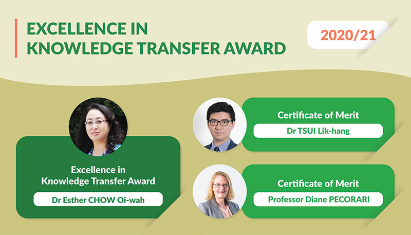 The aim of conducting research is to create new knowledge. But new knowledge has to be transmitted to society through teaching, publications, media channels, collaborations and other means to bring advantages to the public. To honour faculty members whose projects demonstrate clear evidence of innovation, engagement or impact on the community, CityU’s College of Liberal Arts and Social Sciences (CLASS) gives out Knowledge Transfer Awards annually.
