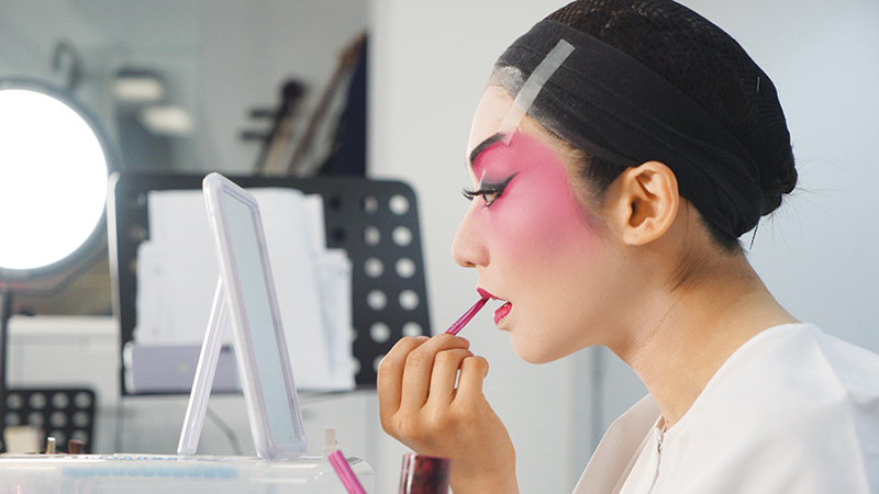 Leung Fei-tung, the Department’s alumna, shows how she puts on make-up for a Chinese opera performance.