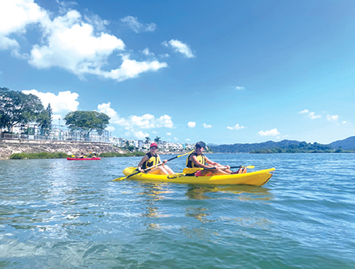 同學(xué)在獨木舟同樂日探索海岸。