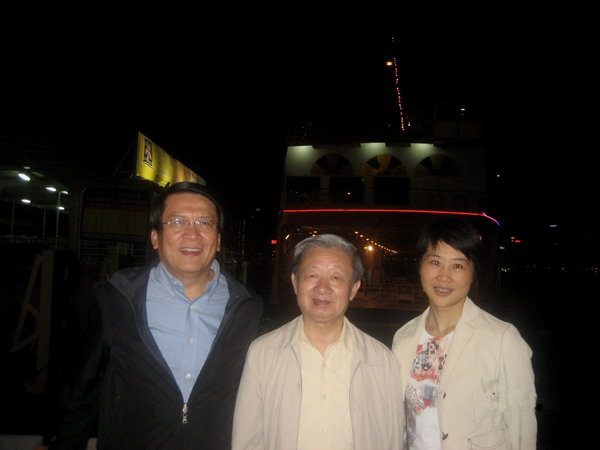 滬港會(huì):復(fù)旦大學(xué)丁淦林教授參加報(bào)刊會(huì)議,與同系年輕教師章平欣賞維港夜景。 |