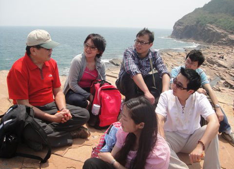 2011年第2期多友到東坪洲“探世界”(下左)吳來安(安徽師大)、沈國麟(復旦)、郭小平(華中科大)、汪凱(浙大)、王辰瑤(北大)、李金銓(城大)