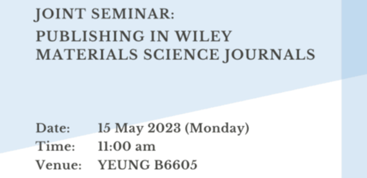 CODSAF & CHEM & MSE Joint Seminar: Publishing in Wiley Materials Science Journals