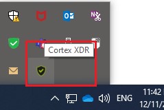 After the Cortex XDR agent installation, the Cortex XDR ICON (as shown below) will be found under the ^?icon at the bottom right of the screen.