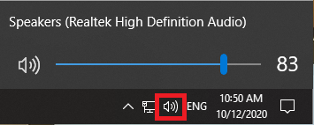 First, you need to check if your computer speaker is turned on and loud enough by clicking on the speaker icon on the taskbar and select an appropriate volume: