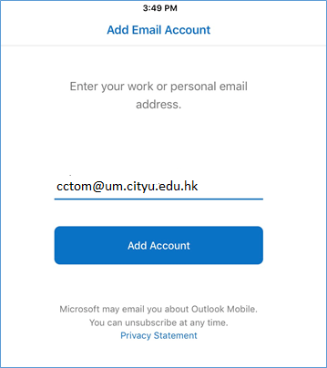 (e.g. cctom@um.cityu.edu.hk) and tap Add Account.