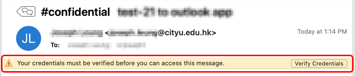 When you receive a Confidential email, you can click on "Verify Credentials" button to login if you have not login with your EID@um.cityu.edu.hk.