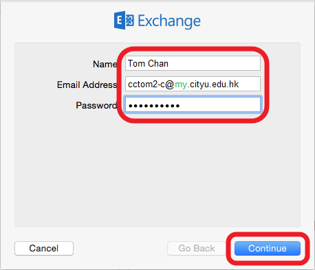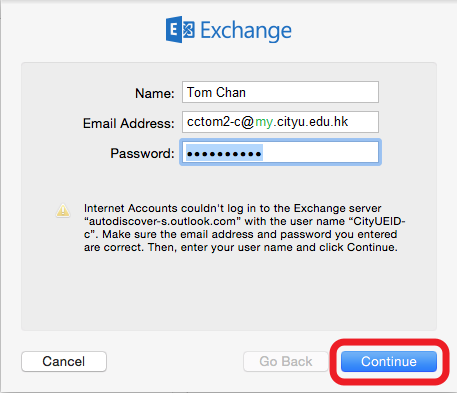 Type your Name, Email Address (i.e. YourEID-c@my.cityu.edu.hk) and Password. Click Continue.