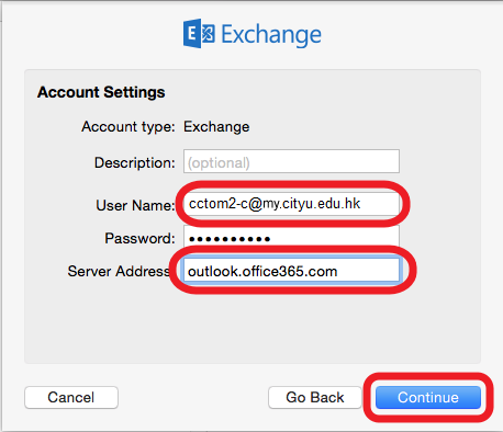 When Account Settings appears, type YourEID-c@my.cityu.edu.hk (e.g. cctom2-c@my.cityu.edu.hk)