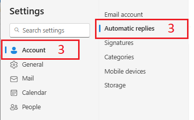 3. In the left pane, select "Automatic replies" under "Account".