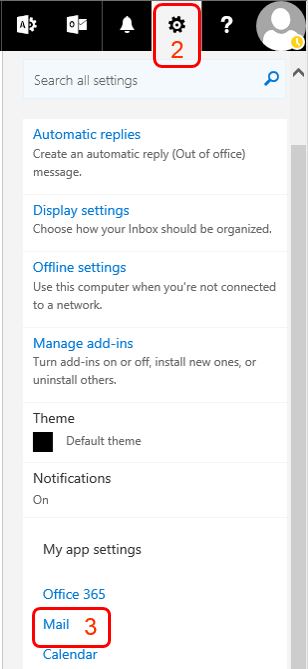 - A pull-down menu like one of the following will appear. Select Options or Mail.