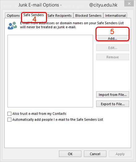 You can set up Safe Sender List in your Microsoft 365 (M365) account so that email sent from those email addresses listed in the Safe Sender List are always received in your Inbox.