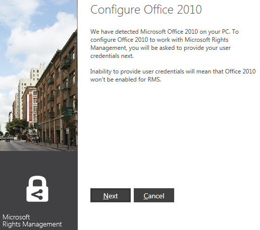 For Office 2010 users, RMS sharing application needs to be installed manually with the following steps.