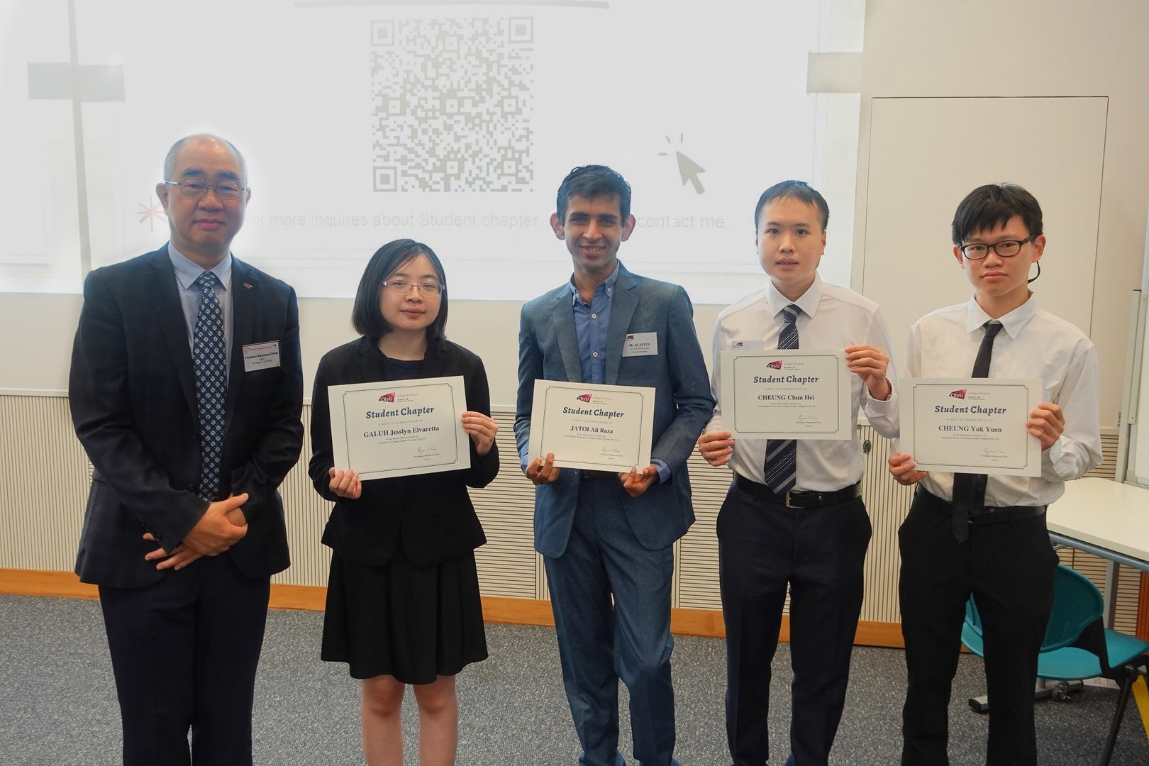 Representatives of CSCI Student Chapter 2022-23, Miss Galuh Jesslyn, Mr. Jatoi Ali, Mr. Alex Cheung, and Mr. Ivan Cheung also grabbed the chance to introduce Student Chapter to the freshmen, recruit new blood to join them and encourage them to participate in the upcoming activities. To recognise their dedication and commitment to the Student Chapter, the Dean presented certificates to them as a token of appreciation.