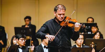 Mr. Paolo Morena, Visiting Artist of 2015-2016 Mr. Paolo Morena was born in Pescara (Italy) in 1973. He has studied violin with George Monch (assistant Henryk Szeryng) in Paris. He continued his studies with V. Liberman, Z. Giles, P. Vernikov, I. Grubert and Marco Rizzi. He has been awarded in several international violin competitions (GB Viotti, Vittorio Veneto, Postacchini) and won with the pianist Alessandro Capella the first prize in the International Competition "Citta′di Termoli” in 1999. In that same year, he received the prize "Giovani talienti” del Rotary Club Italia among the most interesting violinists of his generation. He has performed as soloist under the direction of conductors such as Riccardo Chailly, Wladimyr Iurovsky, Claus Peter Flor, Yutaka Sado, Luis Bacalov, Víctor Pablo Pérez, Oleg Caetani, Jose Maria Sciutto, Christopher Hogwood, Dimitri Sitkovesky and others with a wide repertory from Bach to Schnitke. He has recorded for RAI the first Concerto Grosso A. Schnitker with W. Iurosky as conductor, the Nocturne for violin and orchestra of A. Schoenberg with R.Chailly, and the Concerto for violin and orchestra of R. Scumann with O. Caetani. The composer Giancarlo Menotti has dedicated him his concert for violin and orchestra (1954), premiering his work (in Spain), with Tenerife Symphony Orchestra under the direction of Victor Pablo Perez and the Argentine composer Luis Bacalov (Oscar winner for the soundtrack of the movie " Il Postino ") has dedicated him his Violin Concert, played in world premiering in the same year with Magna Grecia Orchestra under the direction of master Bacalov. He was elected as concertmaster in 1999 by Riccardo Chailly of the Orchestra Sinfonica di Milano "G. Verdi”. Since then he is guest concertmaster in orchestras such as Orchestra Nazionale di Santa Cecilia di Roma, Orchestra del Teatro Carlo Felice di Genova, Orchestra del Teatro Lirico di Cagliari, NES (New European Strings), Orquesta Sinfónica de Galicia, Orquesta Sinfónica de Barcelona y Nacional de Catalunya, Orquesta Sinfónica de Castilla y León, Orchestra della Radio della Svizzera Italiana, Orchestra Filarmonica della Scala. He is currently concertmaster of the Orquesta Sinfónica de Tenerife (director Jia Lu) and playing with a splendid Giovani Battista Guadagnini violin dating from 1771. |