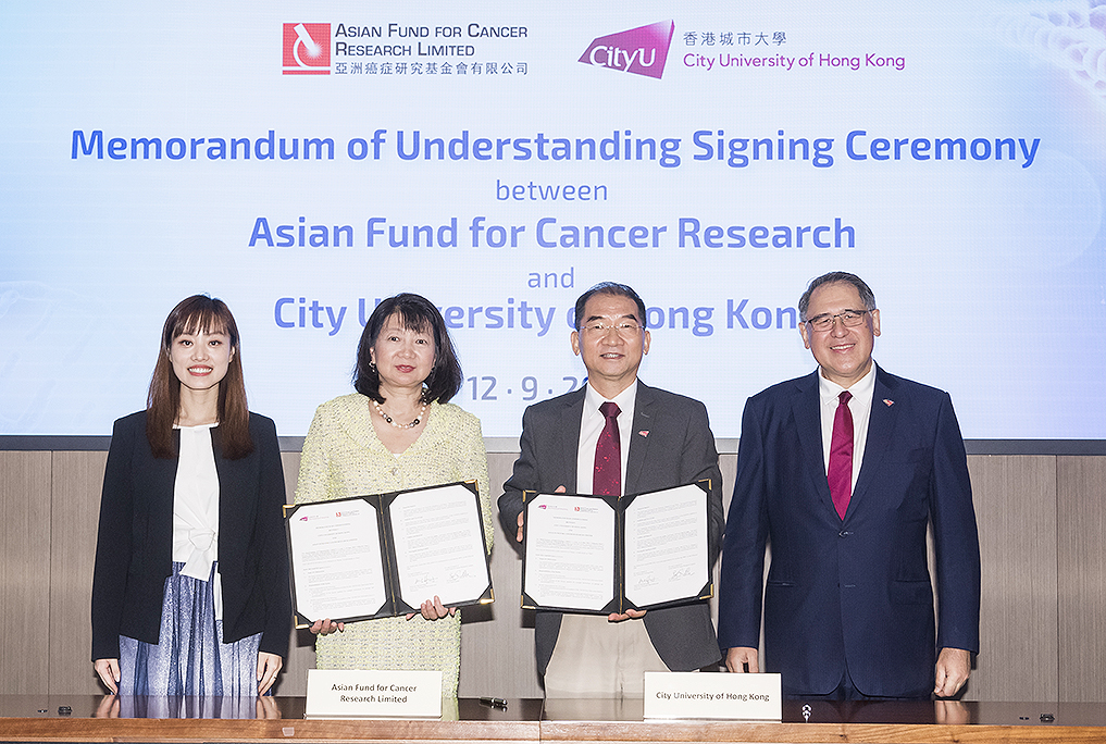The MoU signifies closer ties between CityU and AFCR. Both parties will join to promote academic and innovation and entrepreneurship activities, including the forum “AFCR-CityU Innovation Series in Biomedicine”. World-leading scholars and entrepreneurs in biomedicine will be invited as speakers to promote cutting-edge cancer research, innovation and commercialisation, and to provide the wider public knowledge on cancer prevention, diagnosis and treatment.