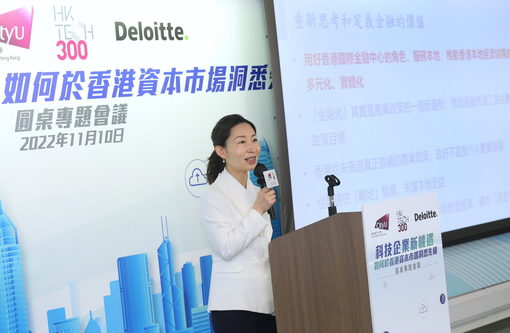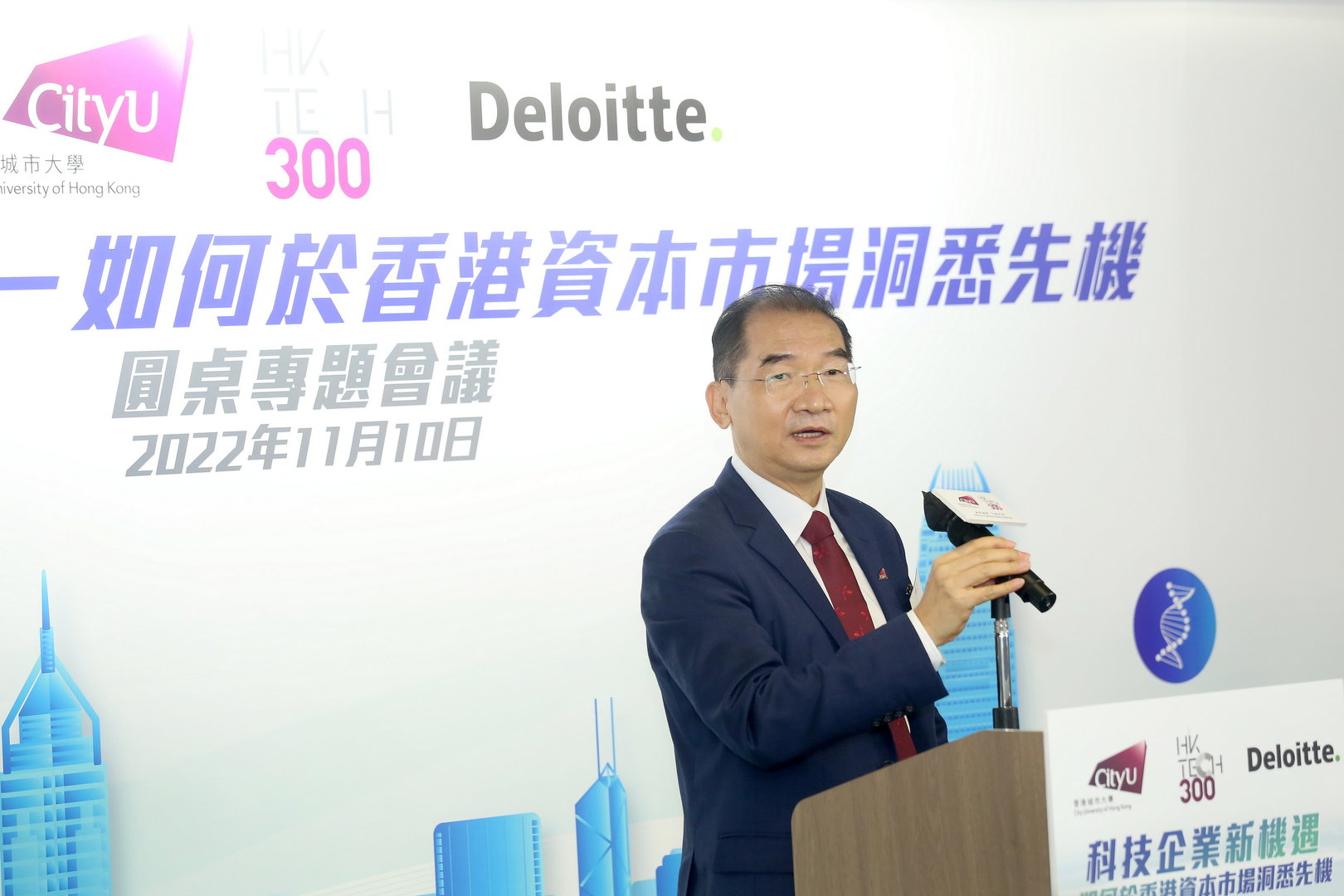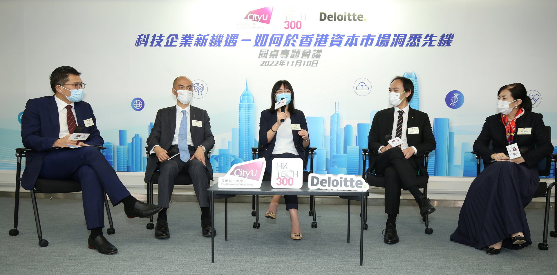City University of Hong Kong (CityU) HK Tech 300 and Deloitte China today (10 November 2022) held a thematic round-table discussion on “New opportunities for Innovation and Technology Enterprises – How to Identify Opportunities in Hong Kong’s Capital Market”. In the discussion, industry experts and government representatives exchanged views on issues such as the development and financing of innovation and technology enterprises, and discussed the prospective establishment of Hong Kong Investment Corporation Limited (HKIC) by the government, and the newly proposed Chapter 18C (referred to as 18C) of Hong Kong’s listing regime, as proposed by the Hong Kong Stock Exchange. CityU also signed a Memorandum of Understanding with Deloitte China on the same day to jointly support the development of HK Tech 300 start-ups.