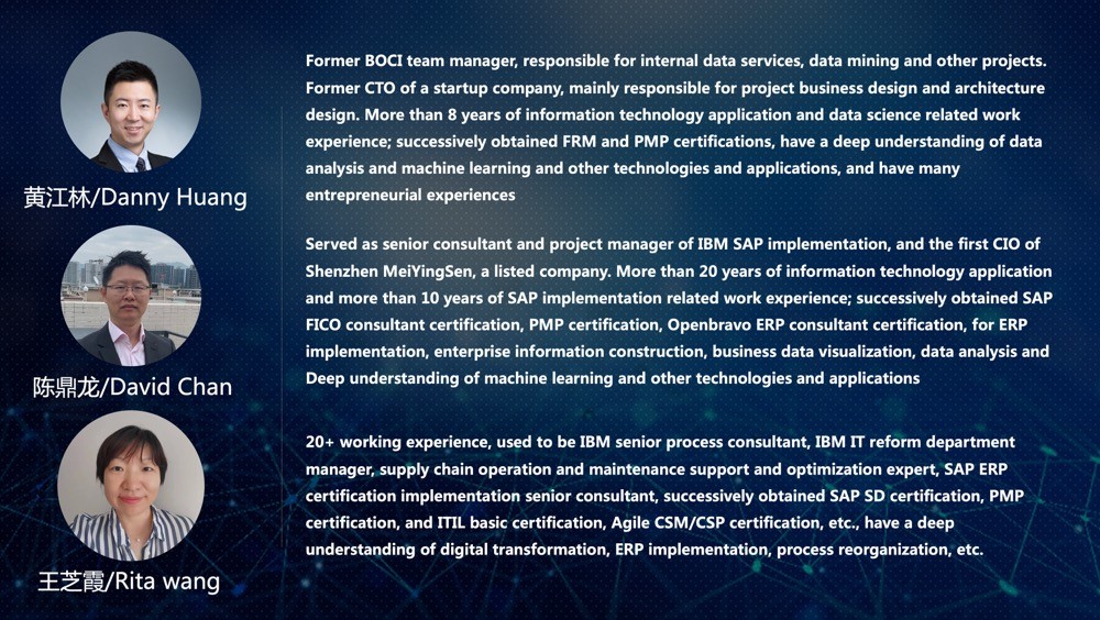 Our team has expertise and experience in machine learning, IoT sensor technology and building energy efficiency. We have developed a set of data-processing tools and an advanced algorithm running on the cloud to collect and process building energy metre data and related data, like weather, which is used to predict energy consumption in a specific time zone in the future with machine learning.