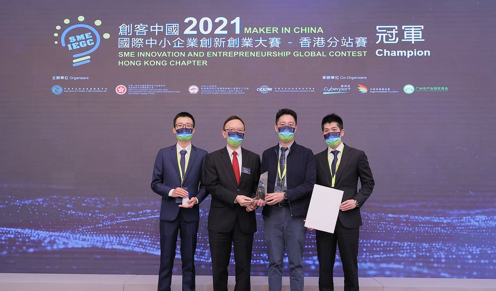 The i2Cool team stood out from 116 entries to win first prize in the Hong Kong Chapter of the “Maker in China” SME Innovation and Entrepreneurship Global Contest 2021 in August. Then they represented Hong Kong in the global final to compete with contestants from Central and Eastern Europe, ASEAN countries, Japan and Korea, as they sought support to enter the Greater Bay Area market, by matching with mainland investors, gaining entry to entrepreneurial parks, and receiving guidance on how to transform technological achievements into marketable products. They won 1st runner-up.