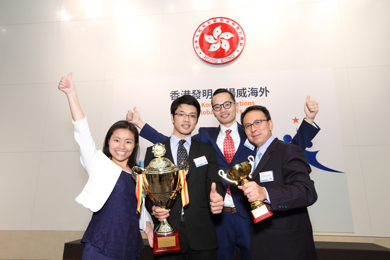水中銀早年憑"轉基因鯖鱂魚"及"斑馬魚"胚胎的慢性和急性毒理檢測技術獲日內瓦國際發明展最高榮譽大獎等多個奬項,左一及二分別為聯合創辦人兼首席技術官丶城大校友陳雪平博士及水中銀創辦人兼執行董事丶城大校友陳子翔。