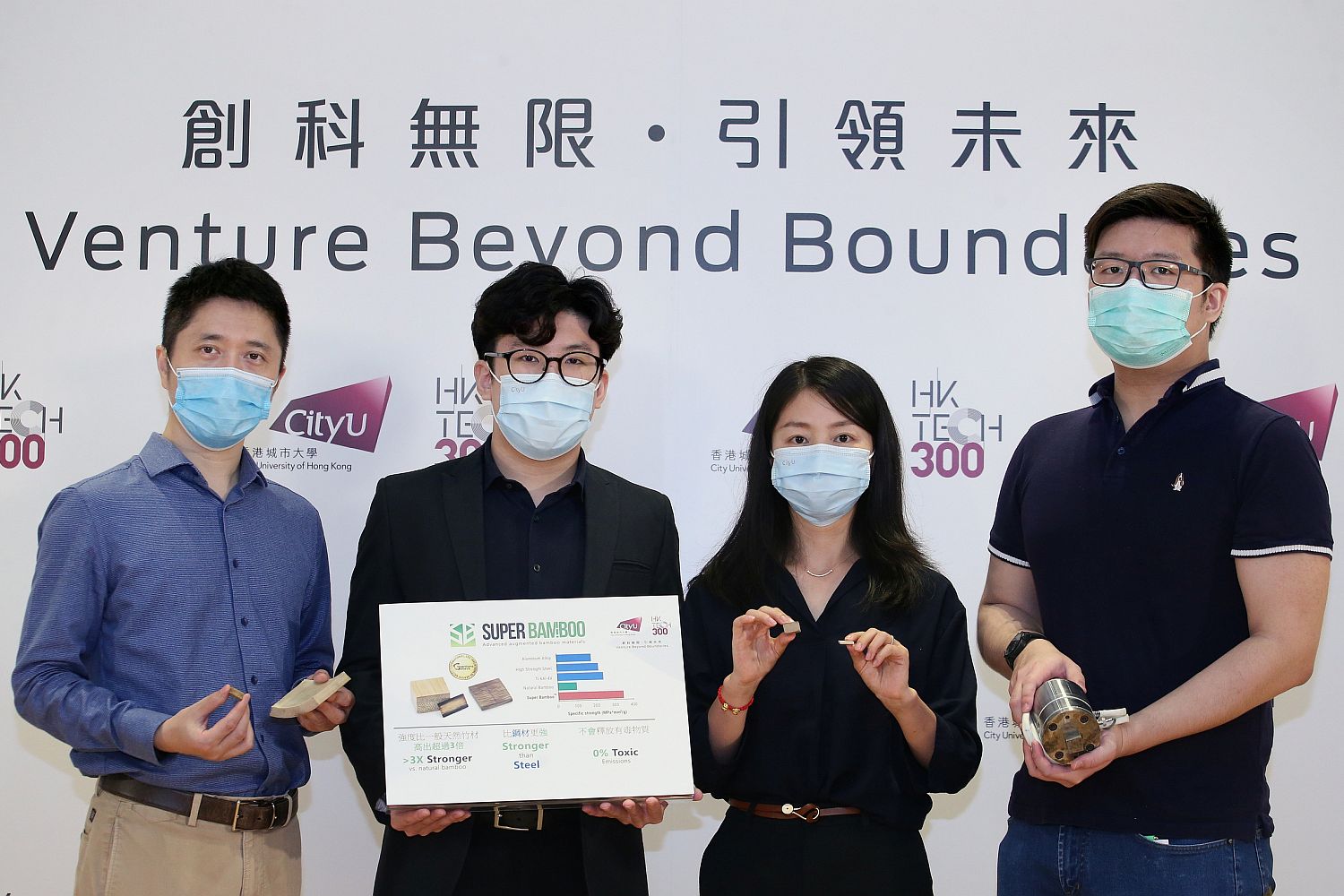 他們運用環保材料科學,設計出強度比天然竹材高超過三倍的「超竹」,獲2021年日內瓦國際發明展金獎。在HK Tech 300種子基金支持下,兩師徒更與團隊創辦「超竹有限公司」(Super Bamboo),繼而獲計劃的天使基金投資,進一步把實驗室里的研究成果轉化為實際應用。
