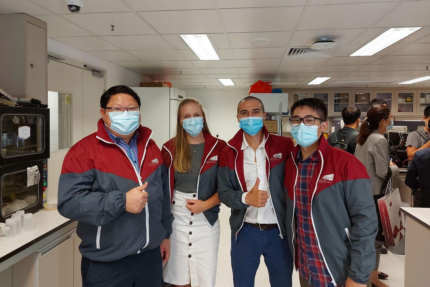 城大化學系博士生Thea Bradford(左二)及其初創團隊與該學系署理系主任梁美儀教授(左一)