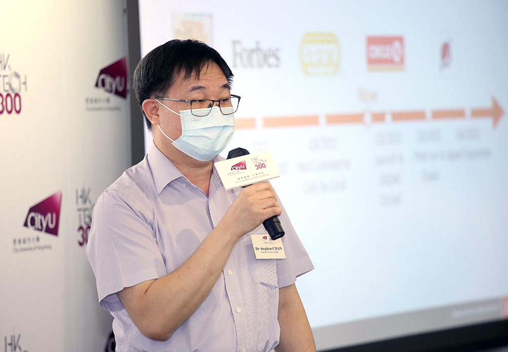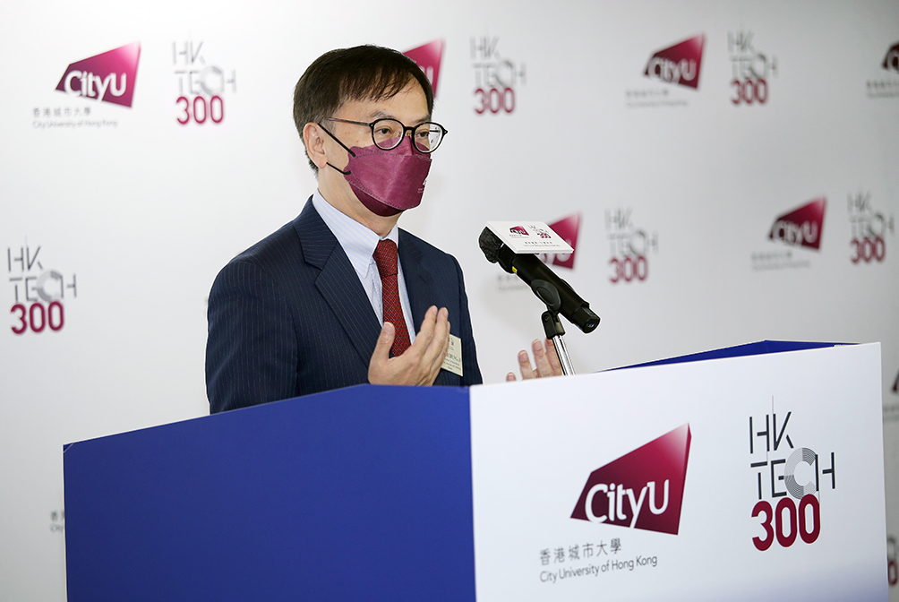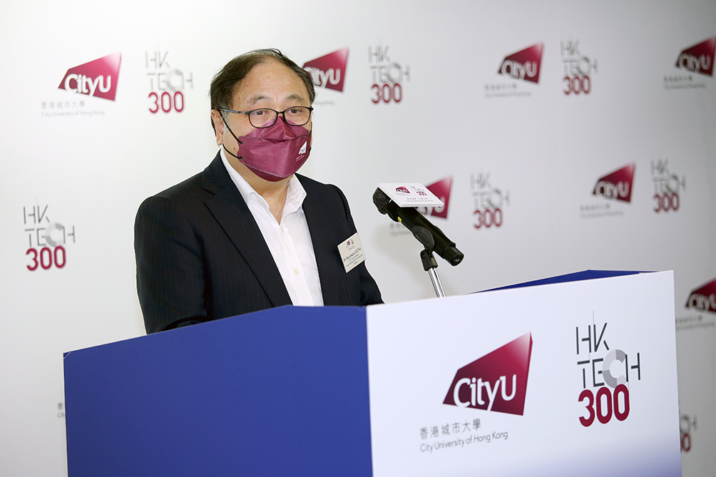 梁博士致辭時說:「城大與創科業界緊密合作,為HK Tech 300的初創隊伍搭建與業界聯系的橋梁,為他們的發展建設更完整的跑道,喜見有來自創投基金、已上軌道的科技公司以及城大校友創辦的成功企業,攜手支持初創公司的成長。我們期望未來與更多行業翹楚和投資者建立合作,成就更多出色的初創企業,促進香港以至其他地區的創科發展。」
