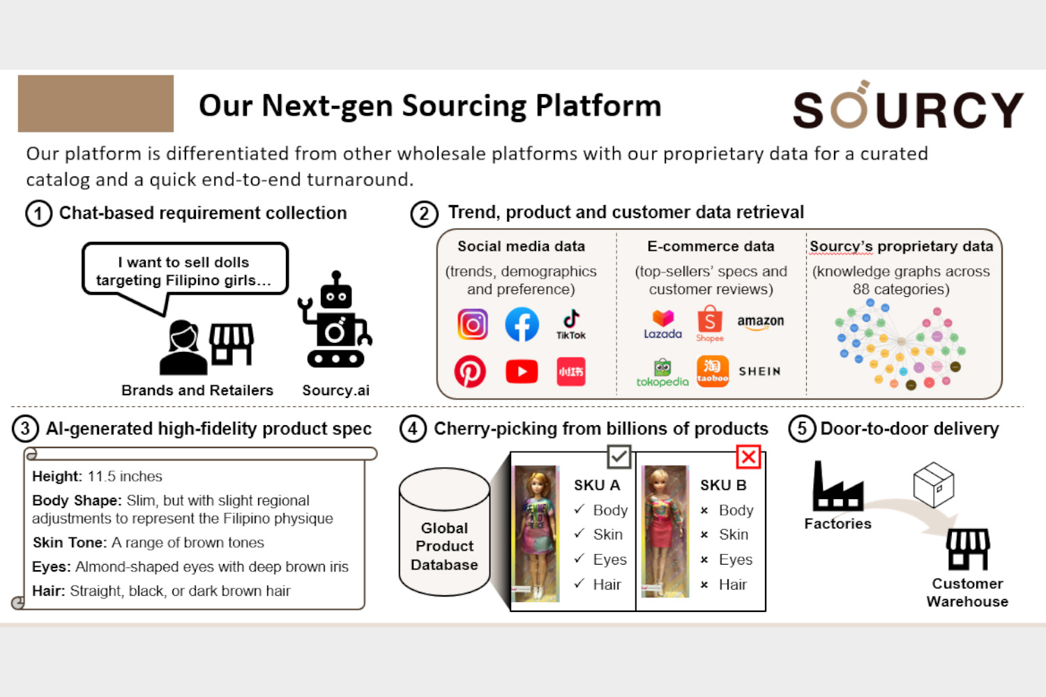 Sourcy是一個(gè)以人工智能為核心的采購平臺(tái),協(xié)助全球品牌和零售商從亞洲市場(chǎng)發(fā)掘、開發(fā)和采購高利潤(rùn)產(chǎn)品。通過整合不同采購渠道,并利用包括社交媒體趨勢(shì)、電子商務(wù)數(shù)據(jù)以及專有知識(shí)圖譜在內(nèi)的數(shù)據(jù)分析,Sourcy有效幫助企業(yè)識(shí)別市場(chǎng)熱門產(chǎn)品,并根據(jù)客戶的需求進(jìn)行定制。我們的平臺(tái)簡(jiǎn)化了從產(chǎn)品發(fā)掘到交付的整個(gè)供應(yīng)鏈管理流程,并已在市場(chǎng)上取得初步成功,獲眾多知名企業(yè)信賴。Sourcy將繼續(xù)致力革新采購行業(yè),幫助企業(yè)快速應(yīng)對(duì)市場(chǎng)變化,在亞洲市場(chǎng)保持優(yōu)勢(shì)。