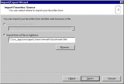 Click on "Next" button and then type in or browse the location of the bookmark file. Substitute the <e-mail> with your e-mail username.