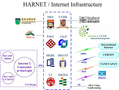 Starting from October 1st the bandwidths of the HARNET's International Internet link and the University's own Internet link have been upgraded from 155 Mbps to 240 Mbps, and from 12 Mbps to15 Mbps respectively. Apart from the bandwidth upgrades, the local HARNET2 connections, which used to be ATM links, have been replaced with Fast Ethernet links. The upgrades will be able to cater the bandwidth requirements of our users in the next 12 months as well as to ensure a smooth network performance by avoiding congestions during peak hours.