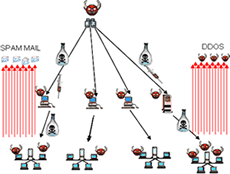 Step 4. The hacker can issue commands to hosts with virus/trojan installed to perform further attacks. e.g. Sending of SPAM MAIL or DDOS attacks | IPS Protection: Our IPS stops the Port Scanning activities at the First Step. Thus, it prevents further infection/attack. |