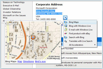 Accelerators allow you to perform a list of functions when selecting some text or link in a web page without leaving the web page. You can add more or remove any of the present accelerators to make the browsing experience better.o Blog with Windows live
