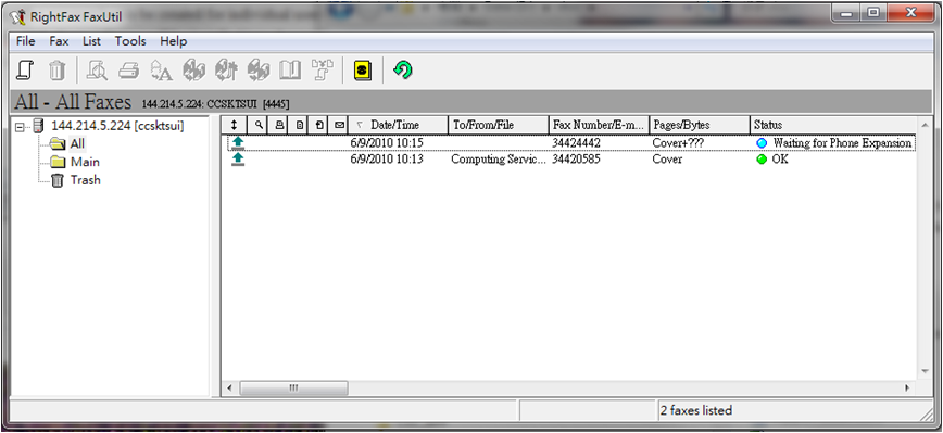 To use the RightFax service, a fax account has to be created for each individual user for accessing the fax server and the FaxUtil client software must be installed on the user’s PC for uploading / downloading faxes to and from the server, and monitoring job status.