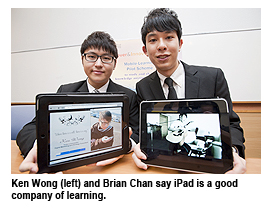 Before the pilot scheme was introduced, the m-learning mode was adopted by the Bachelor of Business (Honours) in Electronic Commerce programme. Brian Chan Wai-man, a Year 3 student in the programme, said, “In one of our tutorial classes, we were required to form groups and use iPhones to videotape digital marketing devices like touch-screen guides and QR codes in shopping malls. The videos were uploaded onto the internet immediately for sharing with other groups of students in different locations.” He added that he and his fellow students could save time on setting up meetings, discussing assignments and compiling reports by using iPads.