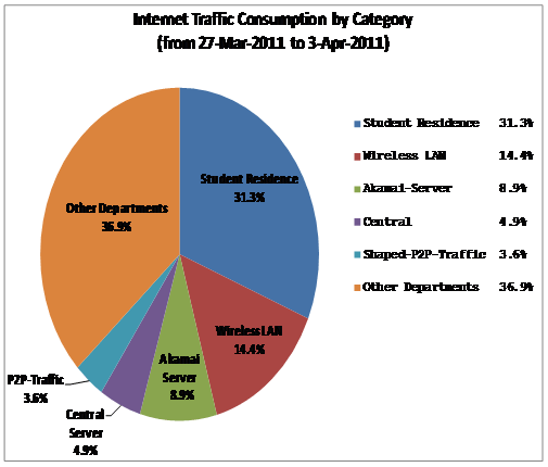 This section shows the portion of Internet traffic of student residence and other services/departments in CityU