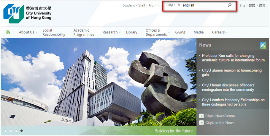 The Google Search Appliance (GSA) does not crawl departmental / project websites that are not chained from the CityU homepage and therefore would exclude them from the search results. If you would like your website to be crawled by the GSA, please raise a CSC work request to add your departmental / project website to the GSA crawling list. In doing so, your website will be included in the search results after 24 hours.
