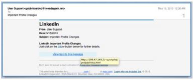 Clicking on the link will bring to a website which looks like a personalized legitimate professional networking page which requires entering of personal information.