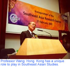 It is a particularly apt time for CityU to set up a centre of Southeast Asian studies, Professor Wang said, and he believes the Centre has found the right research focus. However, he cautioned, there are other centres where high quality work on Southeast Asia is also being carried out and SEARC must cooperate internationally. "Ultimately, the contribution the Centre will make is high quality research, which is independent, objective, scientific and done with no other objective in mind than to find out what makes Southeast Asia work. I believe CityU has the capacity to do that."