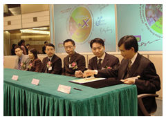 Representatives from five IT companies: abc Multiactive Limited, AKuP International Holding Limited, Integrated Solutions Limited (ISL), Lifewood Interactive Limited, and MYOB Hong Kong Limited, signed an agreement with Professor Richard Ho, Provost of College of Higher Vocational Studies during a ceremony held at CityU's Multi-media Conference Room. The companies also donated their flagship software products worth over HK$2million to the Division of Commerce.