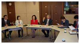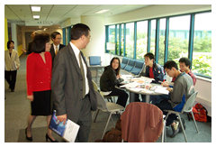Accompanied by Education and Manpower Bureau officials Mrs Cherry Tse (Deputy Secretary for Tertiary Education and Quality Education), Mr Clement Leung (Principal Assistant Secretary for Higher Education Division) and Mrs Avia Lai (Secretary of Education Commission), Dr Rosanna Wong was greeted by President H K Chang, Professor Edmond Ko (Vice-President for Education), Professor P S Chung (Vice-President for Research), Professor Y S Wong (Vice-President for Institutional Advancement), Mrs Peggy Wong (Executive Assistant to the President) and Ms Pauline Chan (Assistant to the President--Community Relations).Professor Chang introduced the guests to CityU's vision, strategic planning, academic structure, staff and student achievements, and curriculum requirements. "CityU is dedicated to excellence in teaching and research," said Professor Chang. "We aim to anchor our undergraduate programmes in technological training and at the same time nourish our students in a rich cultural and humanities ambiance. On the other hand, we also endeavour to make our graduate studies and research work contribute to the region's economic development."