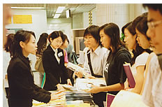 "I plan to apply for CityU's Accountancy programme this year and would like to know more about application requirements," one Form 7 visitor explained. "The Department's briefing was useful and I now believe that there is a bright future for me after graduation from CityU. I decided to take this programme as my first choice under the Joint University Programmes Admissions System." Another visitor added: "I'm here because I heard about this event at my secondary school and I'd like to know more about University life." Although she is just a Form 6 student this year, she is already gathering information to help her plan for the future.