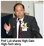 Also highlighted in the 10th anniversary ceremony was a technology transfer experience sharing session, in which Chair Professor (Electronic Engineering) Luk Kwai-man, talked about his story starting and running the Yantai Hi-Gain Hi-Tech Co. Ltd, now a joint