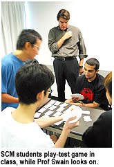 “These SCM students are very good at working in teams, which is important,” Swain observed. “Professionally, we consider it to be a skill you have to practise; for them it just seems natural.” By the end of the course, the students had at least two full, original, well play-tested games that they could take to the next step and build software versions. “What we hope they do is take the concept of intuitive design that they have been creating on paper and see how it can be applied on a computer, with very simple programme,”