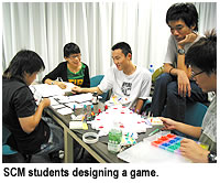 According to Ms Karen McCann, SCM Lecturer, the hands-on aspect of the game design course gave the students an approach that allowed them to cooperate with each other and thoroughly test their ideas. "It has really stimulated the students' imaginations to work closely together in small groups and to construct physical models rather than work in isolation facing a computer screen. You can tell how much they enjoyed the experience by the buzz in the air as they discussed the concepts and methods, and the smiles all round as they played their games together," she said.
