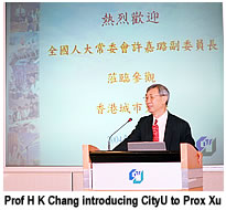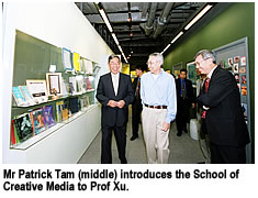 School of Creative Media. Professor Xu was impressed with the achievements of CityU despite its brief history and relatively small campus. He recognized the University’s wise deployment of resources and its efficient and advanced management systems. Professor Xu commended CityU’s vision in accurately positioning itself as a provider of professional education. “CityU has gained a unique position. The strengths of the University are well-matched with the needs of